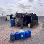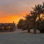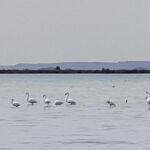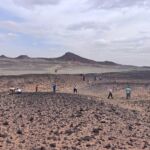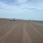 Um 09:30 Uhr werden wir von mehreren Jeeps abgeholt – heute steht ein gemeinsamer Ausflug auf dem Programm, und die ganze Gruppe ist dabei. Es geht hinaus in die abwechslungsreiche Landschaft rund um die Wüste. Unsere Fahrt führt uns durch die „schwarze Wüste“, die mit ihren dunklen Gesteinen einen spannenden Kontrast zu den goldenen Sanddünen bildet. Unterwegs entdecken wir einen See mit Flamingos, die in dieser Umgebung einen besonderen Anblick bieten.