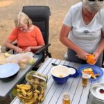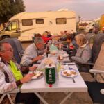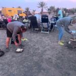 Dort angekommen treffen wir uns zur Routenbesprechung für die nächsten Tage. Am Abend wird gemeinsam gekocht: Es gibt eine leckere Hackfleisch-Tajine, die wir in geselliger Runde genießen – die beste Tajine, die wir auf dieser Reise gegessen haben. Ein großes Dankeschön an die Gruppe! Außerdem gab es Couscous, der uns frisch geliefert wurde ein herzliches Dankeschön an Zaid und seine Familie. Zusätzlich bereiteten wir zusätzlich einen frischen Obstsalat zu.