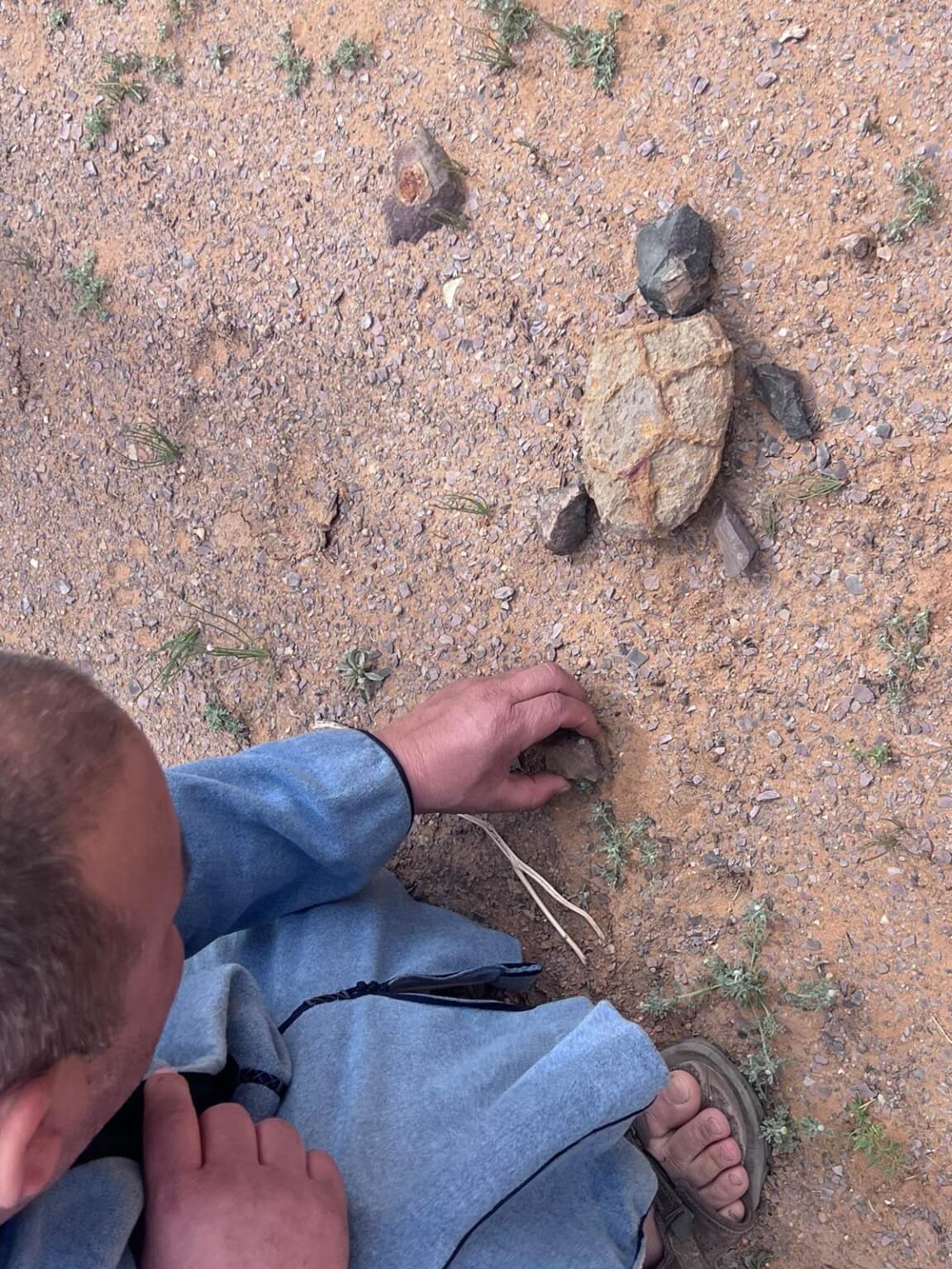 Auf unserer Route sehen wir außerdem die Überreste der alten Fremdenlegion sowie verlassene Dörfer, die von vergangenen Zeiten erzählen. Besonders interessant ist ein Gebiet, in dem Mineralien abgebaut werden. Hier entdecken wir Steine, die wie Schildkrötenpanzer aussehen – ein faszinierendes Naturphänomen. Wir sind total begeistert – ehrlich gesagt sogar besser als jeder Souvenirladen! Statt irgendwas zu kaufen, sammeln wir einfach unsere eigenen Steine und nehmen so die schönsten Erinnerungen mit.