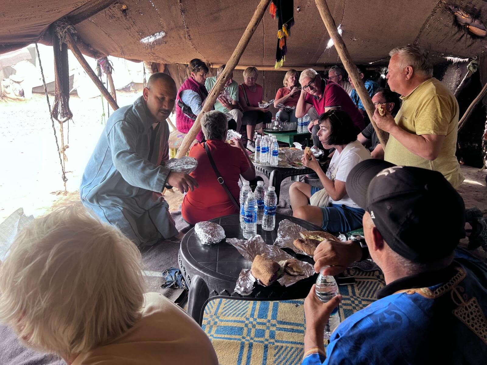 Zur Mittagszeit erreichen wir ein Beduinendorf, wo wir gemeinsam ein Picknick genießen und eine entspannte Pause einlegen.