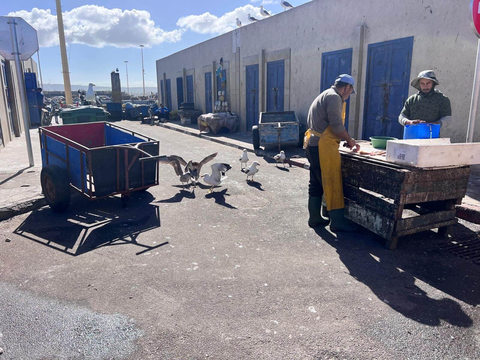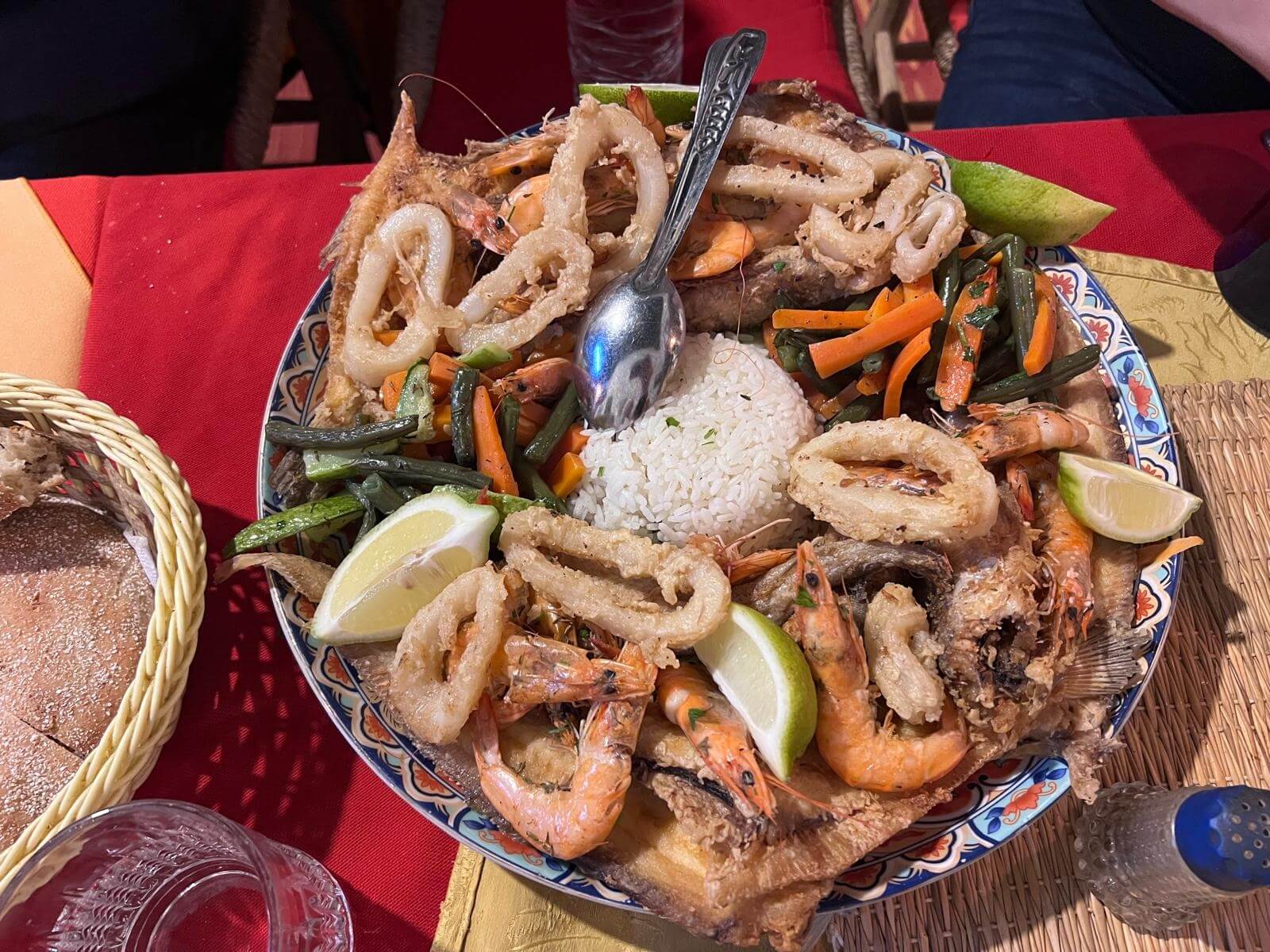 Zum Mittagessen kehren wir gemeinsam ein und genießen frischen Fisch und marokkanische Spezialitäten. Der Fisch kommt hier praktisch direkt aus dem Meer auf den Teller.