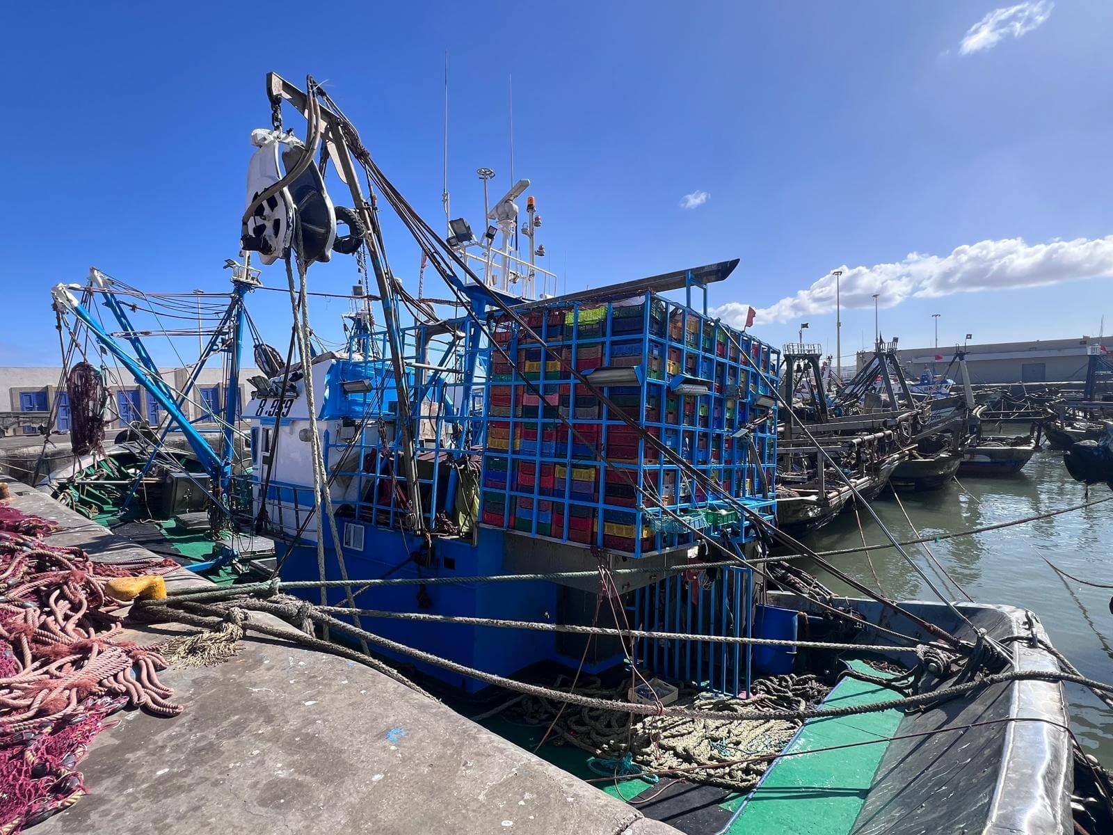 Heute nehmen wir uns Zeit, die faszinierende Küstenstadt Essaouira genauer zu entdecken. Die historische Hafenstadt, auch „die Eingeschlossene“ genannt, gehört mit ihrer komplett erhaltenen Altstadt seit 2001 zum UNESCO-Weltkulturerbe. Ein Höhepunkt unseres Rundgangs ist der Fischereihafen. Hier herrscht geschäftiges Treiben. Die vielen traditionellen blauen Fischerboote liegen dicht an dicht im Hafenbecken.