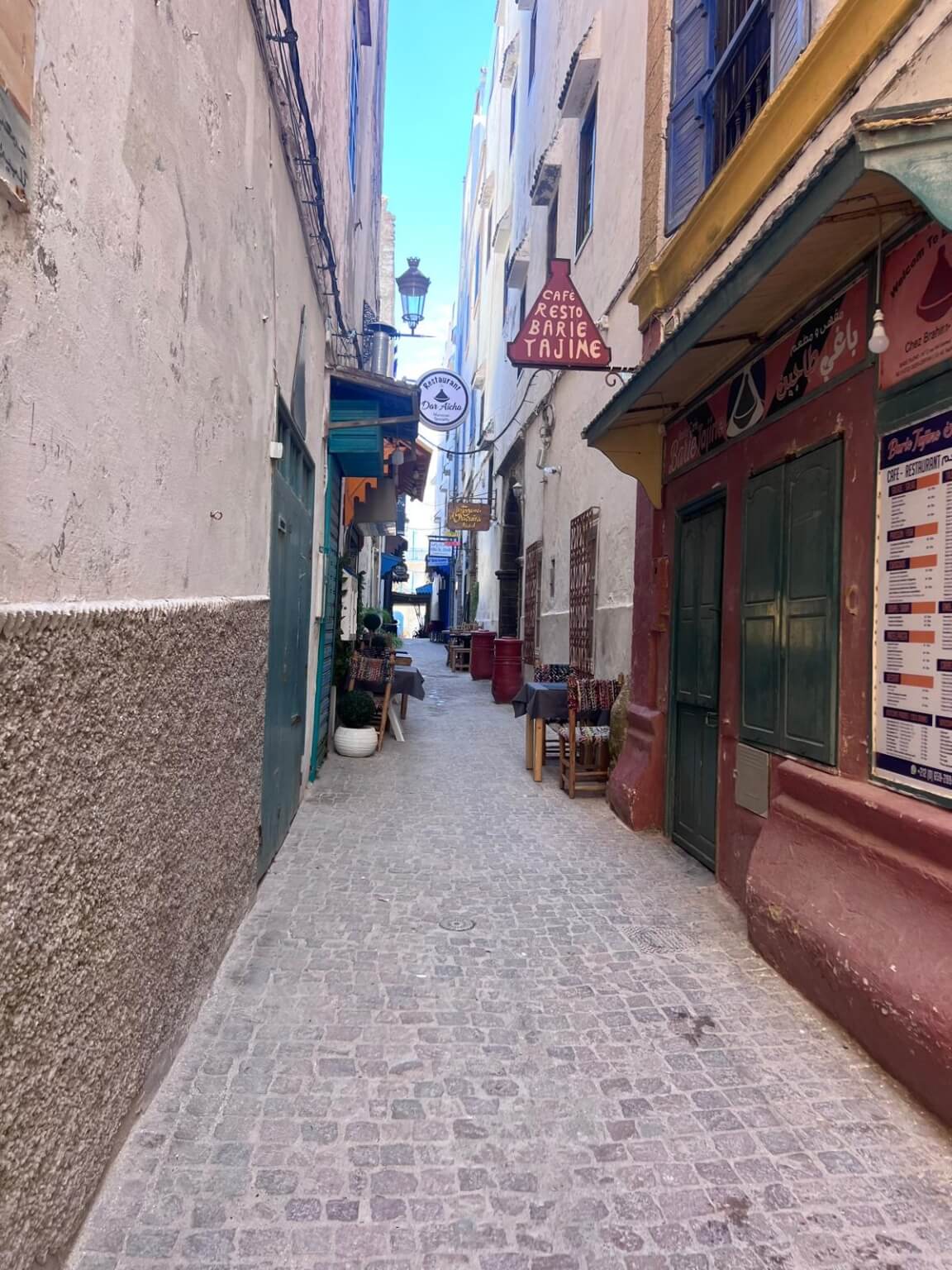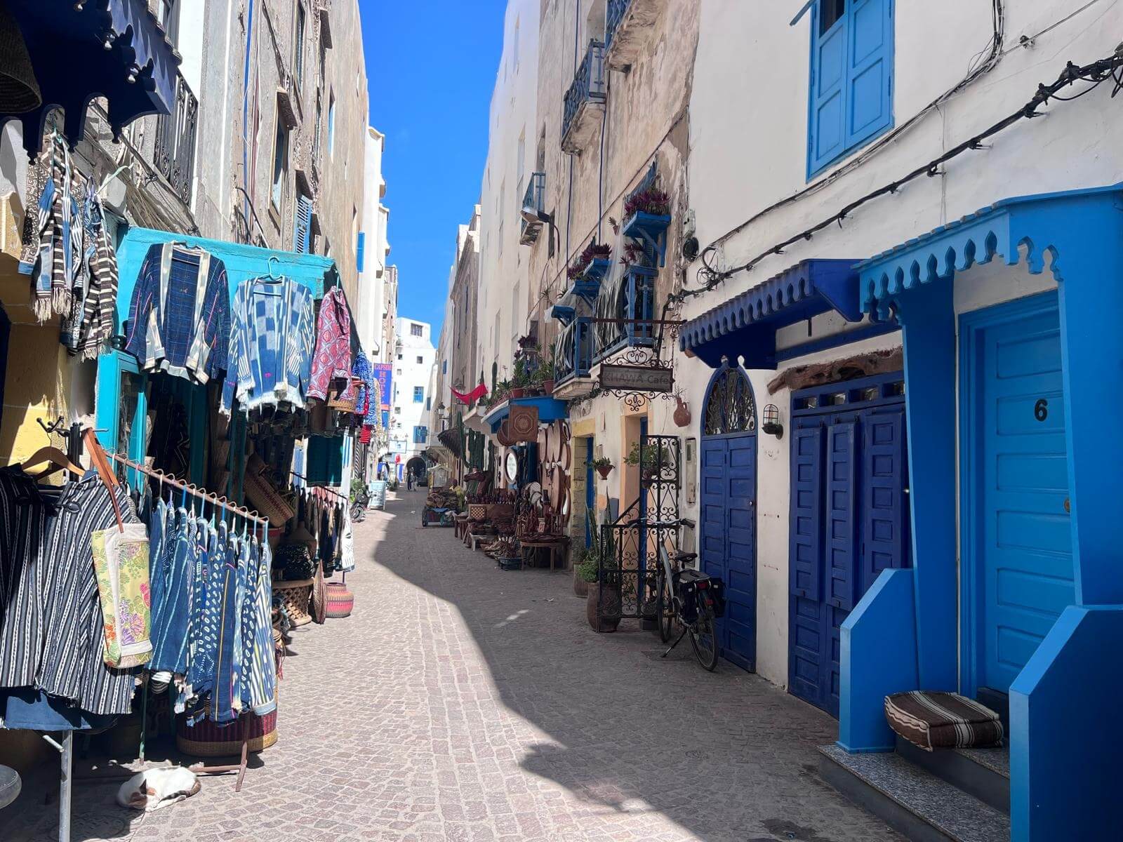Schon beim Betreten der Medina spürt man die besondere Atmosphäre: Schmale Gassen, weiß gekalkte Häuser mit den typisch blauen Türen und Fensterläden sowie kleine Handwerksläden und Galerien prägen das Stadtbild. Von den alten Stadtmauern aus hat man zudem einen wunderbaren Blick über den Atlantik und den Hafen. Die kräftige Meeresbrise, für die Essaouira bekannt ist, sorgt dabei für eine ganz besondere Stimmung in der Stadt.