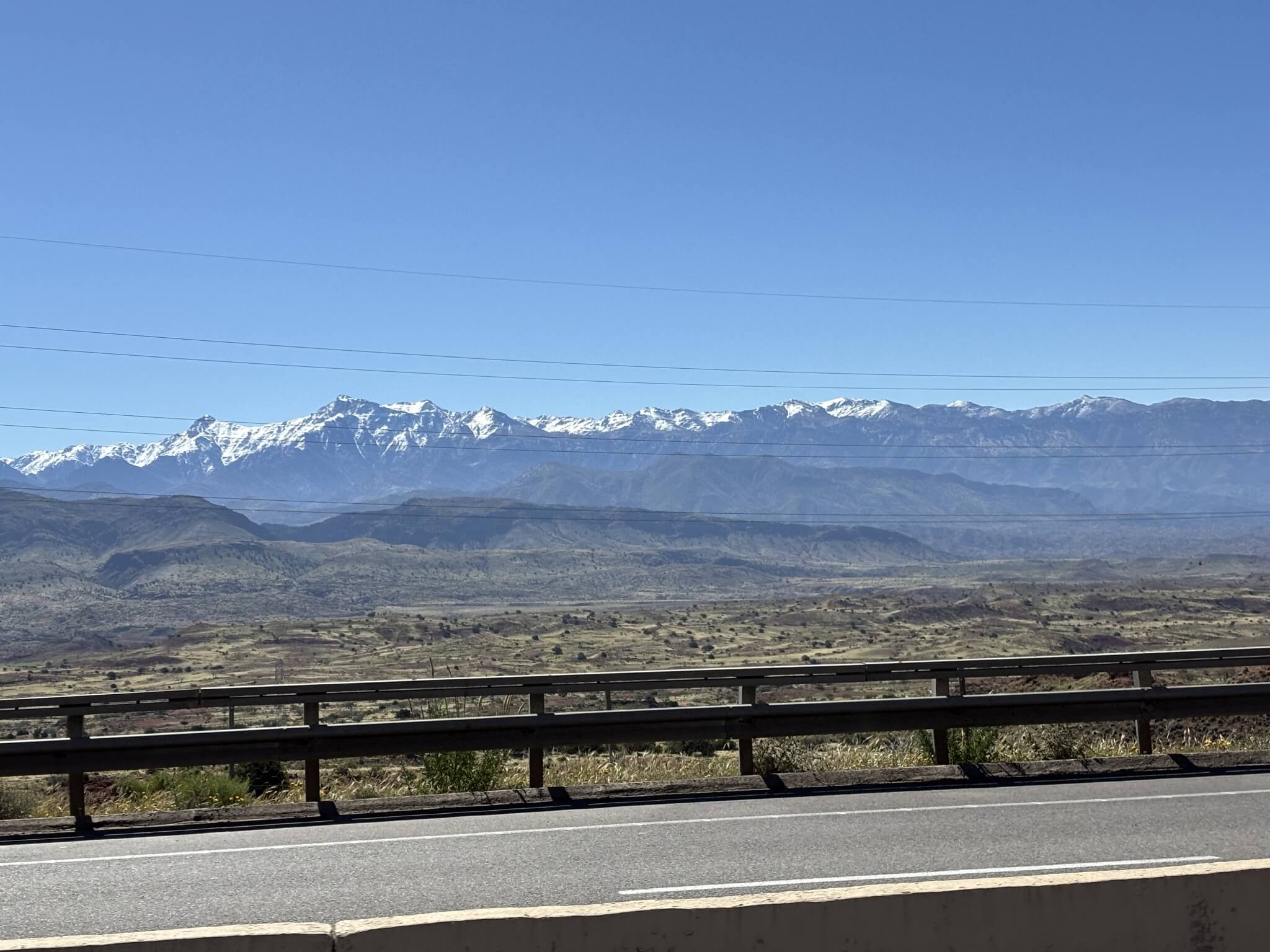 Normalerweise fahren wir von hier weiter über den Hohen Atlas. Aufgrund von Bauarbeiten ist es mit unseren Wohnmobilen momentan nicht möglich. So fahren wir direkt nach Agadir. Das hat aber den Vorteil, dass wir morgen einen Ruhetag direkt am Atlantik haben und die Vorteile des 4-Sterne-Campingplatzes, direkt am langen Sandstrand gelegen, genießen können. Wir beginnen unsere Tagesetappe bei traumhaftem Wetter und Blick auf die schneebedeckten Gipfel des Atlasgebirges. Die nächsten 100 Kilometer wird uns dieser schöne Anblick begleiten. Nachdem wir das Stadtgebiet verlassen haben, kommen wir durch fruchtbares Gebiet mit gut bestellten Feldern. Später, mit zunehmender Höhe, wird die Landschaft karger, aber wesentlich abwechslungsreicher. Die meisten von uns entscheiden, die Distanz nicht nur auf der Autobahn, sondern einen Teil auf der reizvolleren Nationalstraße zu bewältigen. Im Laufe des Nachmittags erreichen alle den Campingplatz und können von da ab die Sonne am Atlantik genießen. Am Abend nutzen einige das empfehlenswerte Restaurant am Platz, genießen den Sonnenuntergang am Strand, tanzen in den Abend oder treffen sich auf einen Plausch und ein Glas Wein vor ihren Wohnmobilen.