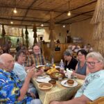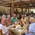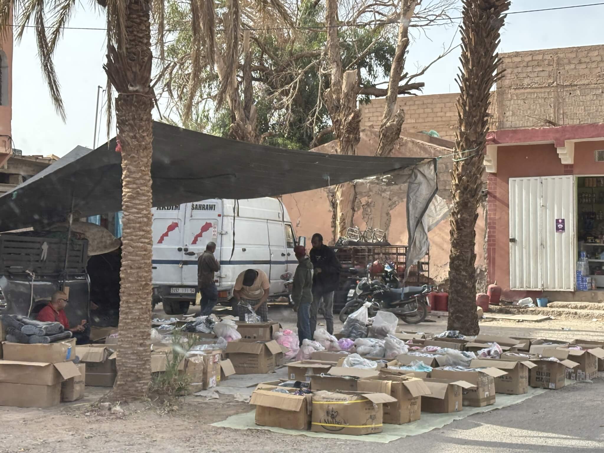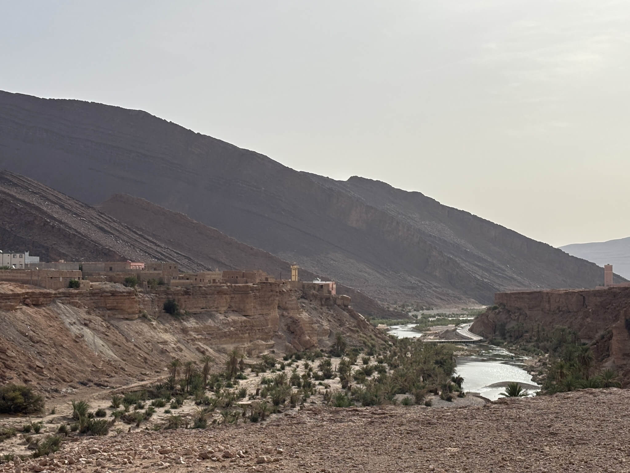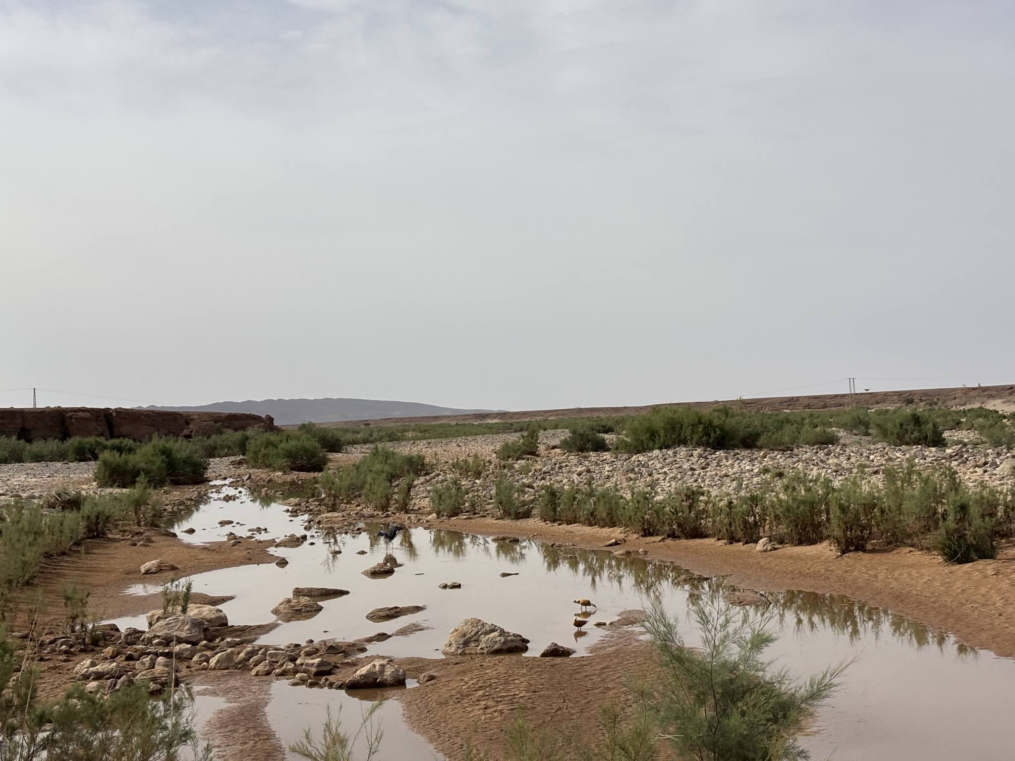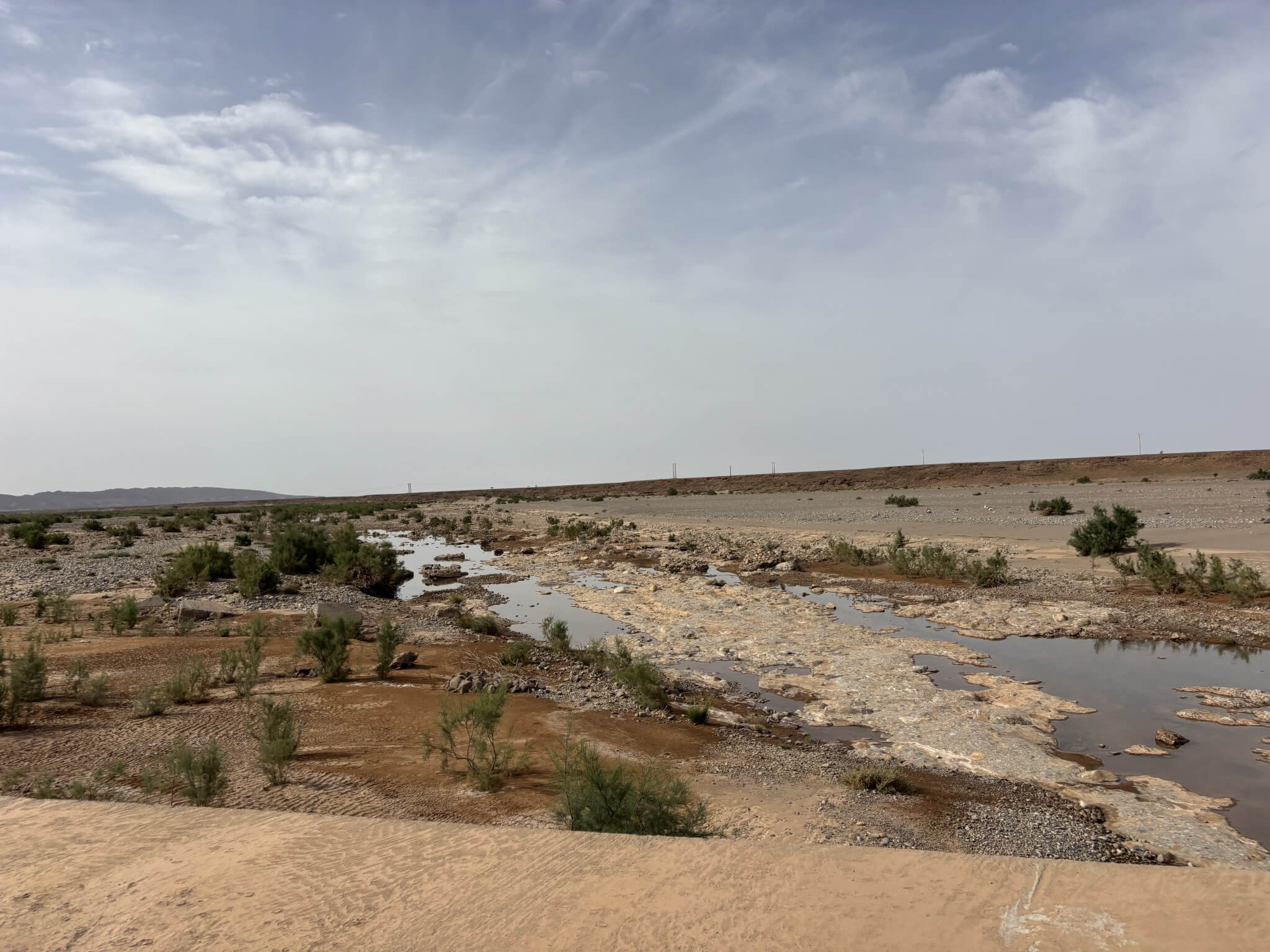 Heute liegen nur 140 Kilometer auf gut ausgebauter Straße vor uns. Wir werden also zügig vorankommen und können uns früh richtig Zeit lassen. Auf unserer Route gibt es wieder viele beschädigte Flussquerungen, die uns aber keine Probleme bereiten, da sie gut gesichert und schon im Sanierungsprozess sind. Bei einer weggespülten Brücke haben die Marokkaner eine Behelfsumfahrung angelegt. Wir staunen immer wieder, wie schnell sie ihre Frühjahrsschäden reparieren. Ansonsten ist die Landschaft heute eher karg, aber trotzdem beeindruckend. Gelegentlich sehen wir Plantagen mit Dattelpalmen, kleine Felder, Dromedare, Esel, Ziegen sowie kleine Dörfer und Siedlungen. Da Sonntag ist, erwacht das Leben erst nach und nach. Aufgrund der vorangegangenen Regenfälle findet sich in einigen Flussbetten noch genügend Wasser für die angrenzenden Bäume und Pflanzen. Auch können wir mehrere Palmenoasen entlang unserer Route sehen. Kurz vor Tissint gibt es einen schönen Aussichtspunkt, an dem wir einen Fotostopp mit Blick in eine große Oase und den Ort einlegen. Nach knapp drei Stunden erreichen wir unseren Campingplatz. Wir stehen unter Palmen und genießen den Nachmittag. Um 18 Uhr treffen wir uns zur Besprechung des nächsten Fahrtages, bevor wir ins Restaurant des Campingplatzes wechseln. Dort haben wir für uns ein Menü vorbestellt. Die Hauptspeise, Tajine Kefta, hat uns besonders gut geschmeckt. Da es ein sehr milder Abend ist, verbringen ihn die meisten noch etwas im angeregten Gespräch vor ihren Wohnmobilen. So geht wieder ein abwechslungsreicher Tag zu Ende. Leider musste ein Paar wegen technischer Probleme in die Werkstatt nach Zagora, unserem nächsten Tagesziel, geschleppt werden. Wir drücken ihnen die Daumen, dass die Reparatur schnell gelingt und sie ihre Fahrt bald mit uns gemeinsam fortsetzen können.