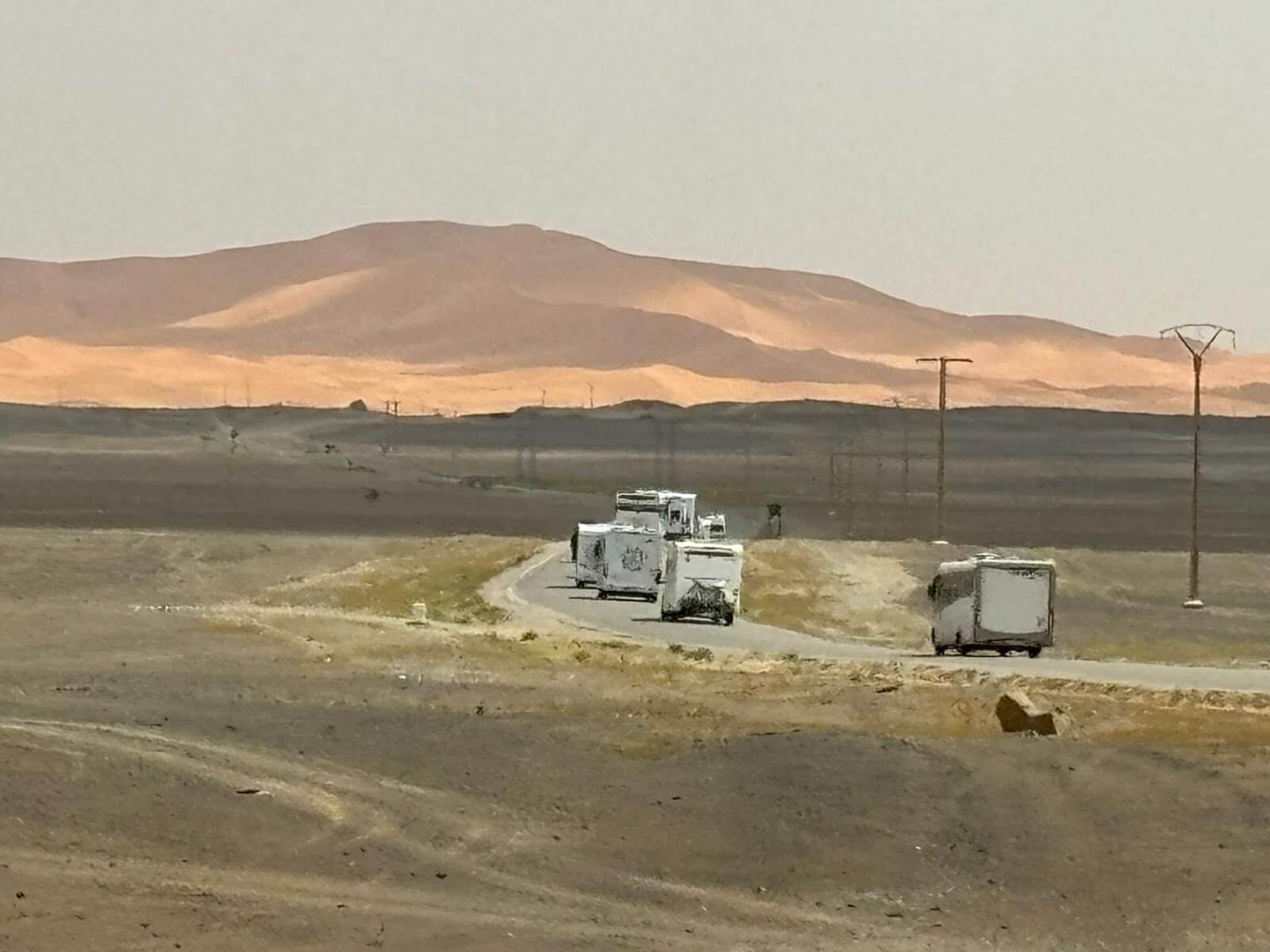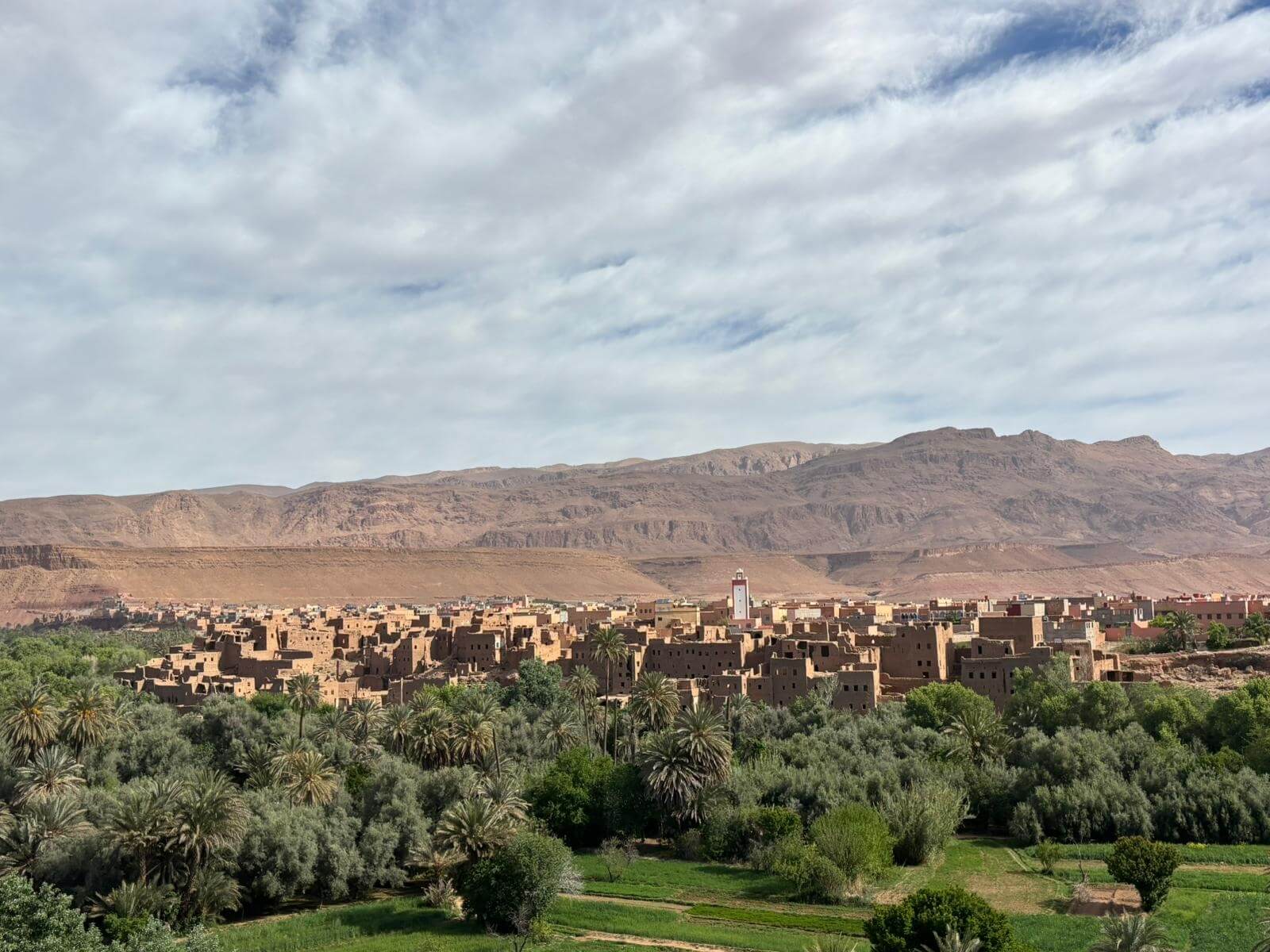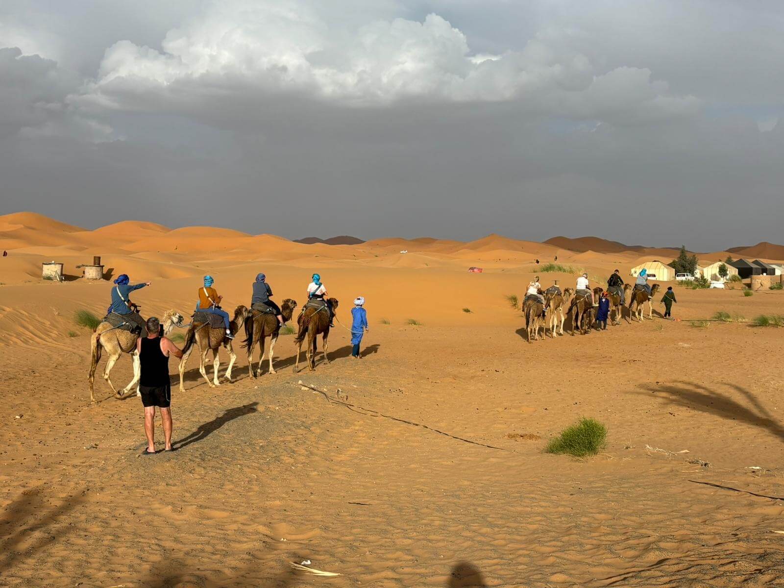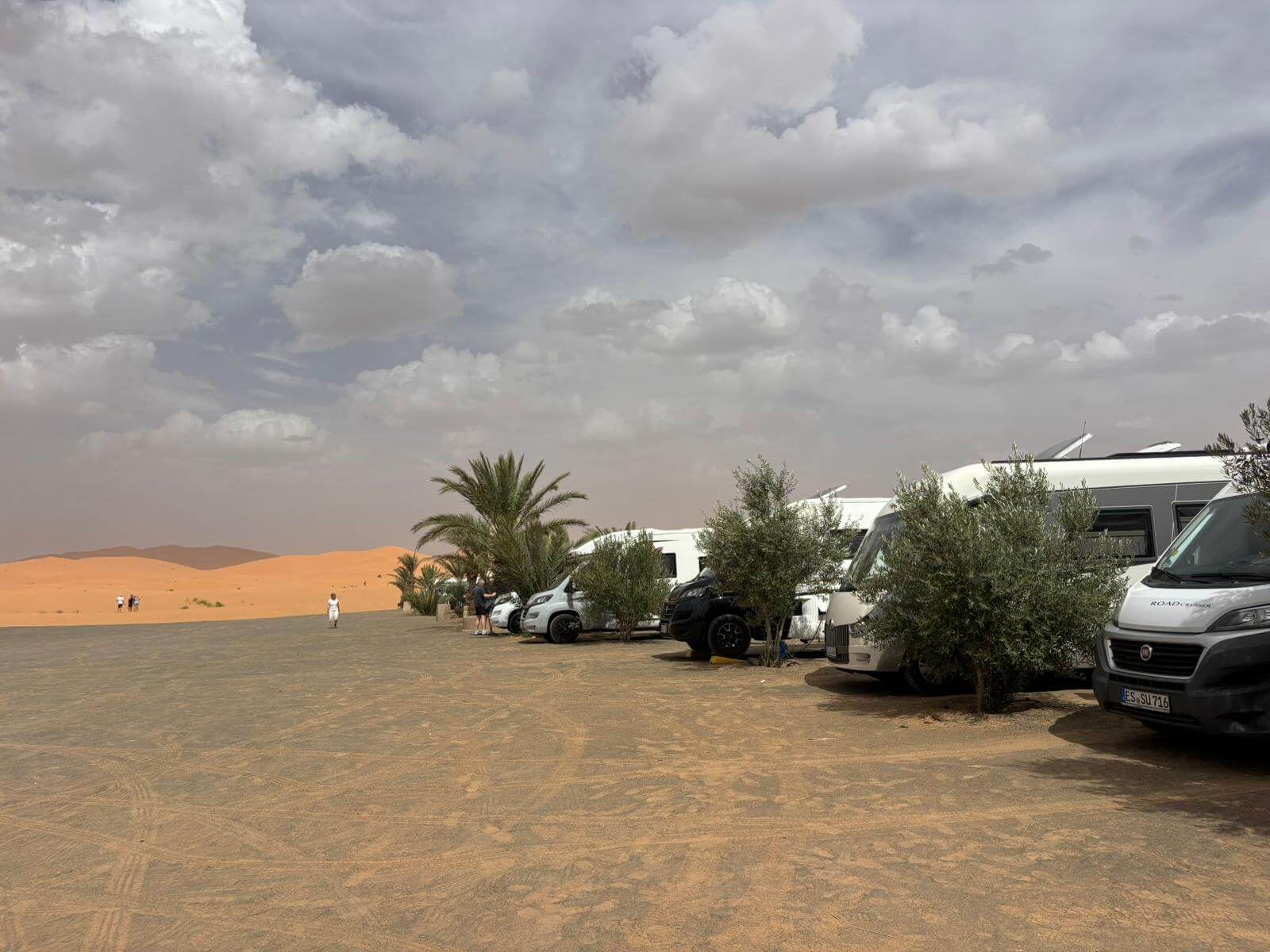 Heute liegen ca. 200 Kilometer vor uns und wir fahren wieder durch eine beeindruckende Landschaft. Nach 40 Minuten erreichen wir den Höhepunkt der heutigen Etappe, die Todra-Schlucht. An ihrer engsten Stelle ist sie nur zehn Meter breit und die Felswände ragen beeindruckend steil in die Höhe. Wir durchfahren die Engstelle und kommen an schönen Obstgärten und kleinen Lehmdörfern, eng an die Felsen geschmiegt, vorbei. Nach zwei Dritteln unserer Tagesetappe treffen wir uns in Erfoud an einer Steinschleiferei. Majid, der Firmenchef, stellt uns die vielfältigen Produkte seiner Firma und die einzelnen Bearbeitungsschritte vor. Auch erfahren wir viele interessante Details zur Entstehung der Fossilien vor 350 bis 450 Millionen Jahren. Wer möchte, kann anschließend Produkte der Firma käuflich erwerben. Gemeinsam fahren wir weiter zu unserem Campingplatz in Merzouga. Nach kurzer Zeit haben die ersten Reiseteilnehmer den Hotelpool als Platz ihrer Wahl für den Nachmittag entdeckt. Kurz nach 18 Uhr starten einige Teilnehmer zum Ausritt mit dem Dromedar zum Sonnenuntergang in die Wüste. Am Abend zieht es viele ins Restaurant, wo heute ein Buffet angeboten wird. In gemütlichen Runden beenden wir den Tag am Rande der Wüste.