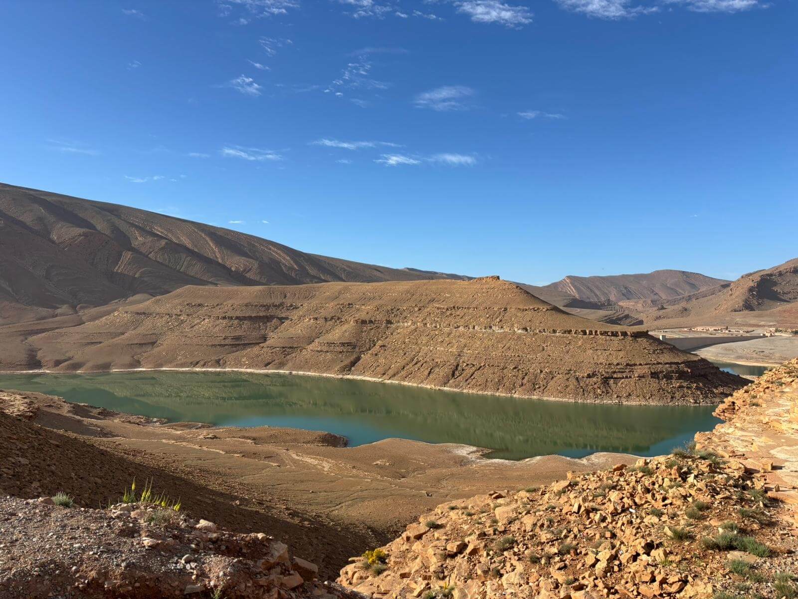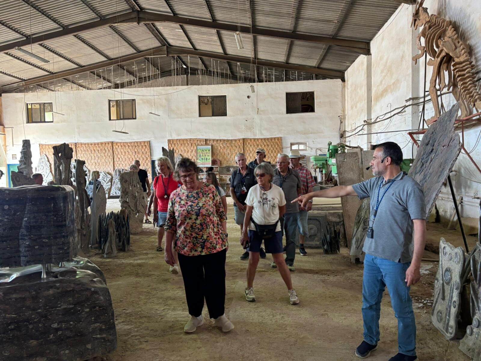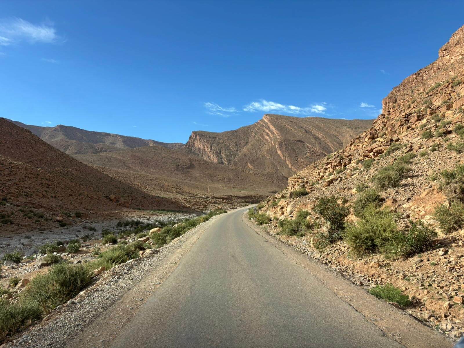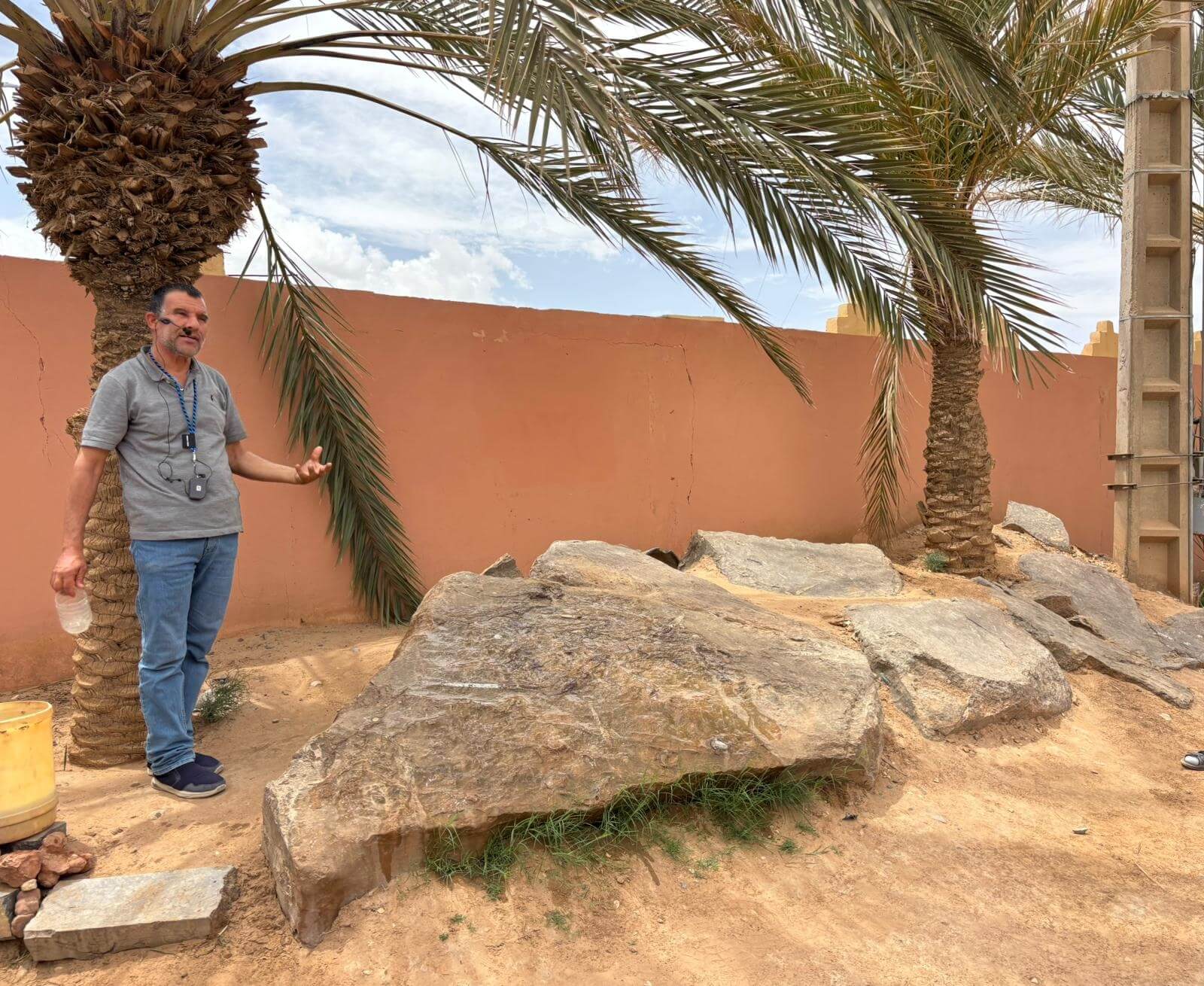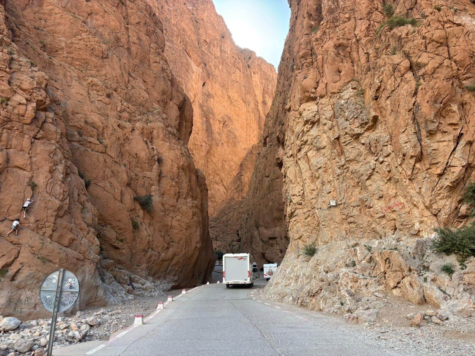 Heute liegen ca. 200 Kilometer vor uns und wir fahren wieder durch eine beeindruckende Landschaft. Nach 40 Minuten erreichen wir den Höhepunkt der heutigen Etappe, die Todra-Schlucht. An ihrer engsten Stelle ist sie nur zehn Meter breit und die Felswände ragen beeindruckend steil in die Höhe. Wir durchfahren die Engstelle und kommen an schönen Obstgärten und kleinen Lehmdörfern, eng an die Felsen geschmiegt, vorbei. Nach zwei Dritteln unserer Tagesetappe treffen wir uns in Erfoud an einer Steinschleiferei. Majid, der Firmenchef, stellt uns die vielfältigen Produkte seiner Firma und die einzelnen Bearbeitungsschritte vor. Auch erfahren wir viele interessante Details zur Entstehung der Fossilien vor 350 bis 450 Millionen Jahren. Wer möchte, kann anschließend Produkte der Firma käuflich erwerben. Gemeinsam fahren wir weiter zu unserem Campingplatz in Merzouga. Nach kurzer Zeit haben die ersten Reiseteilnehmer den Hotelpool als Platz ihrer Wahl für den Nachmittag entdeckt. Kurz nach 18 Uhr starten einige Teilnehmer zum Ausritt mit dem Dromedar zum Sonnenuntergang in die Wüste. Am Abend zieht es viele ins Restaurant, wo heute ein Buffet angeboten wird. In gemütlichen Runden beenden wir den Tag am Rande der Wüste.