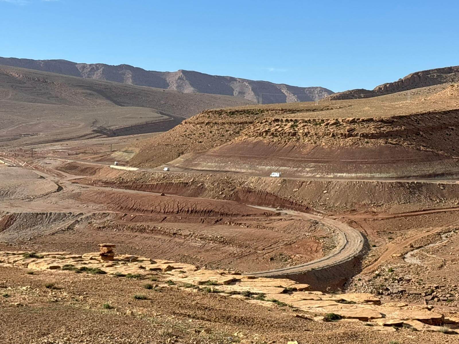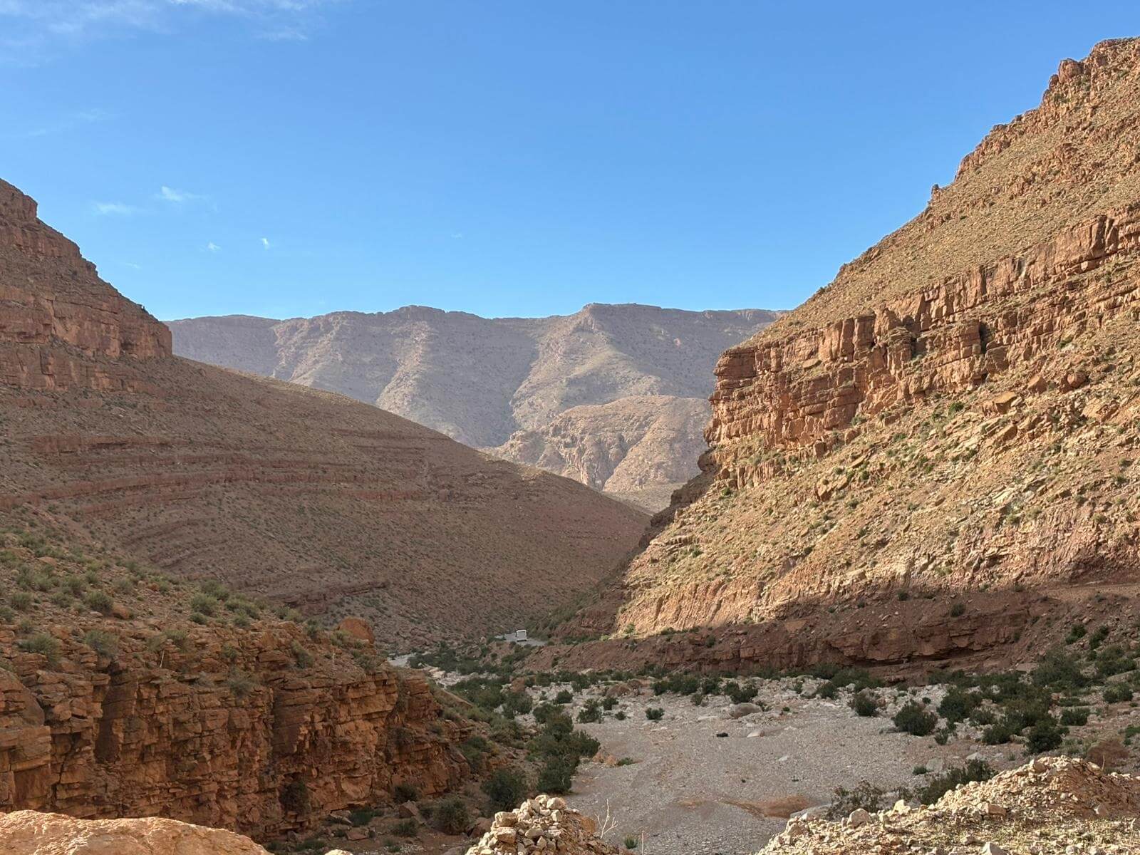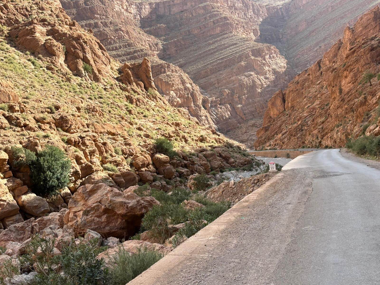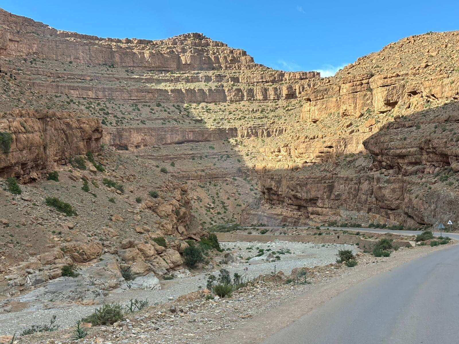 Heute liegen ca. 200 Kilometer vor uns und wir fahren wieder durch eine beeindruckende Landschaft. Nach 40 Minuten erreichen wir den Höhepunkt der heutigen Etappe, die Todra-Schlucht. An ihrer engsten Stelle ist sie nur zehn Meter breit und die Felswände ragen beeindruckend steil in die Höhe. Wir durchfahren die Engstelle und kommen an schönen Obstgärten und kleinen Lehmdörfern, eng an die Felsen geschmiegt, vorbei. Nach zwei Dritteln unserer Tagesetappe treffen wir uns in Erfoud an einer Steinschleiferei. Majid, der Firmenchef, stellt uns die vielfältigen Produkte seiner Firma und die einzelnen Bearbeitungsschritte vor. Auch erfahren wir viele interessante Details zur Entstehung der Fossilien vor 350 bis 450 Millionen Jahren. Wer möchte, kann anschließend Produkte der Firma käuflich erwerben. Gemeinsam fahren wir weiter zu unserem Campingplatz in Merzouga. Nach kurzer Zeit haben die ersten Reiseteilnehmer den Hotelpool als Platz ihrer Wahl für den Nachmittag entdeckt. Kurz nach 18 Uhr starten einige Teilnehmer zum Ausritt mit dem Dromedar zum Sonnenuntergang in die Wüste. Am Abend zieht es viele ins Restaurant, wo heute ein Buffet angeboten wird. In gemütlichen Runden beenden wir den Tag am Rande der Wüste.