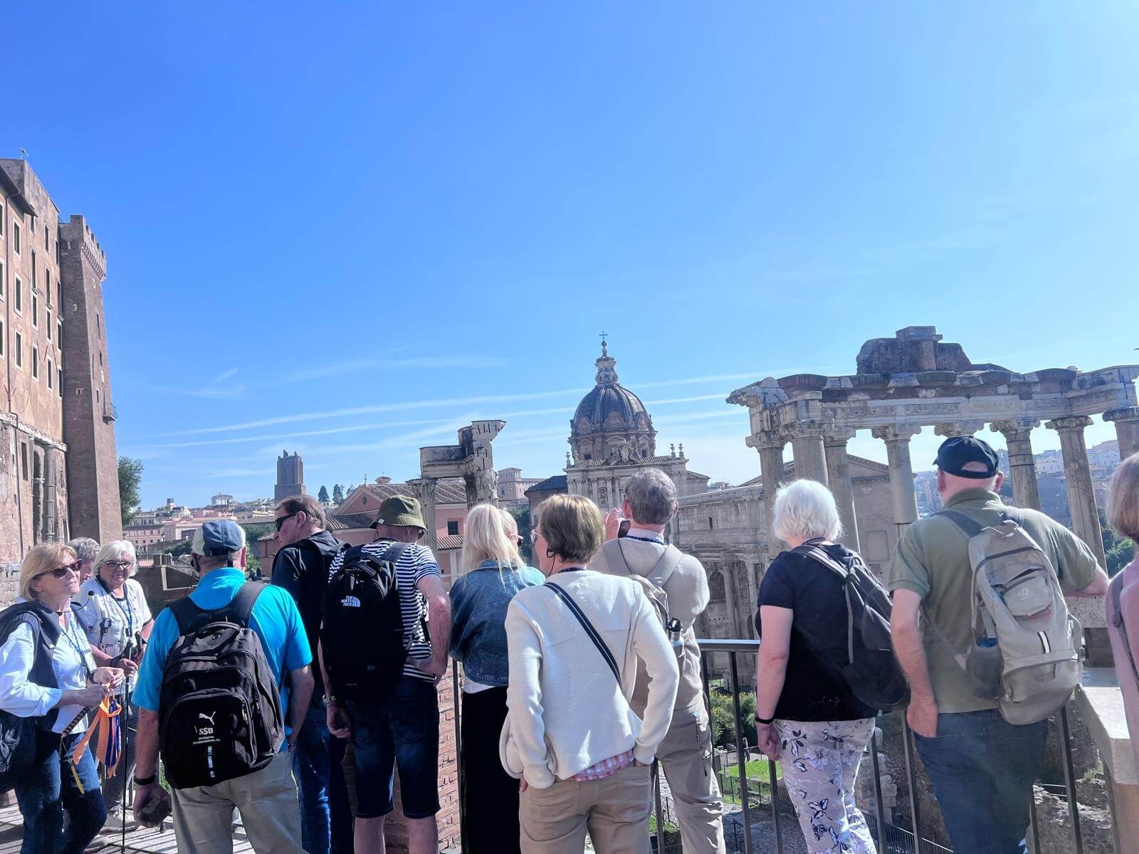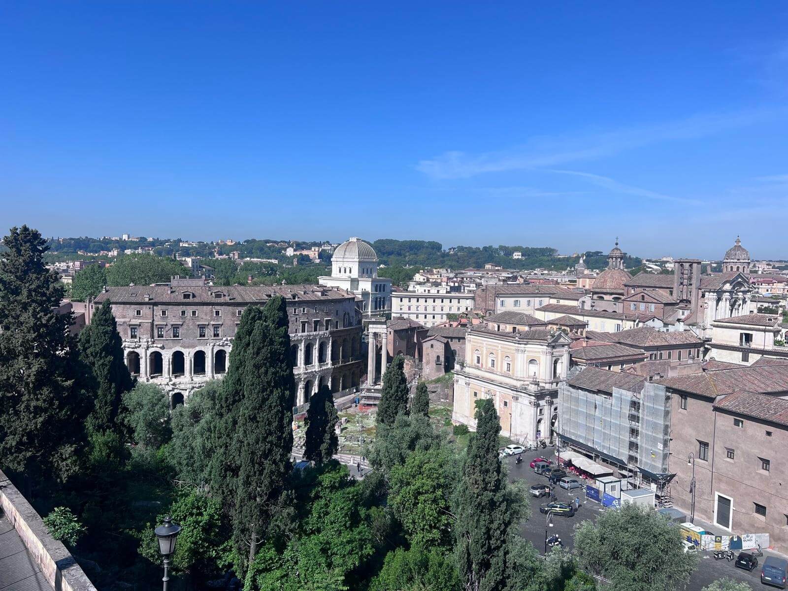 Im Anschluss kommen wir am Rathaus vorbei, und nur ein Stück weiter eröffnet sich uns ein fantastischer Ausblick über Rom – ein Moment, um die Größe und Geschichte dieser Stadt noch einmal aus einer ganz anderen Perspektive zu erfassen.