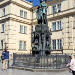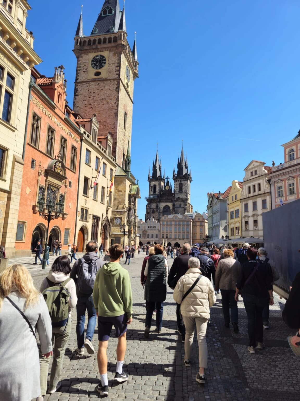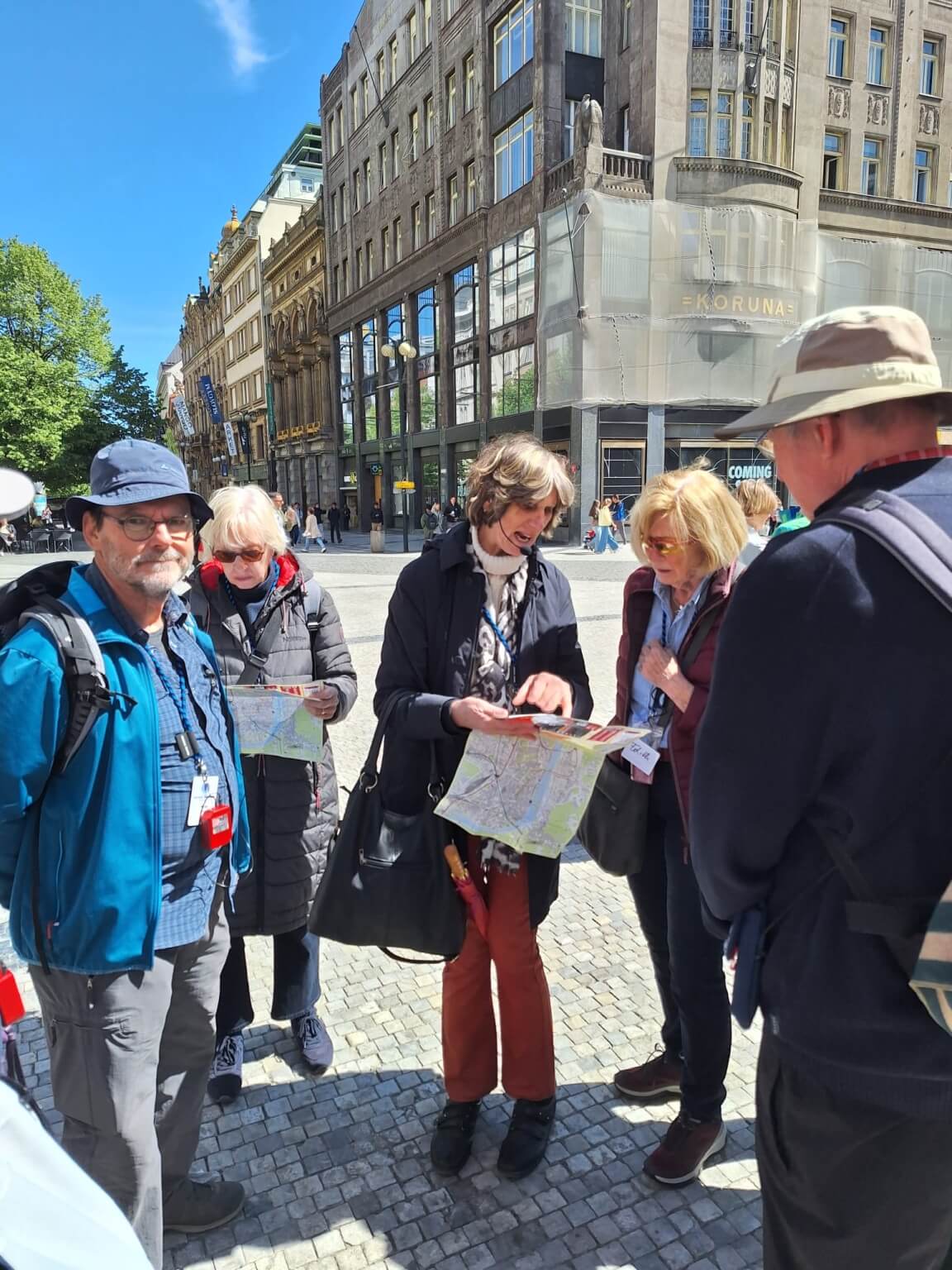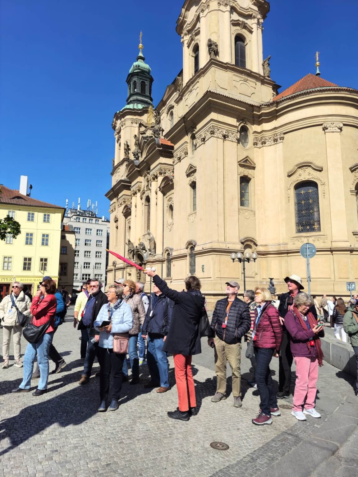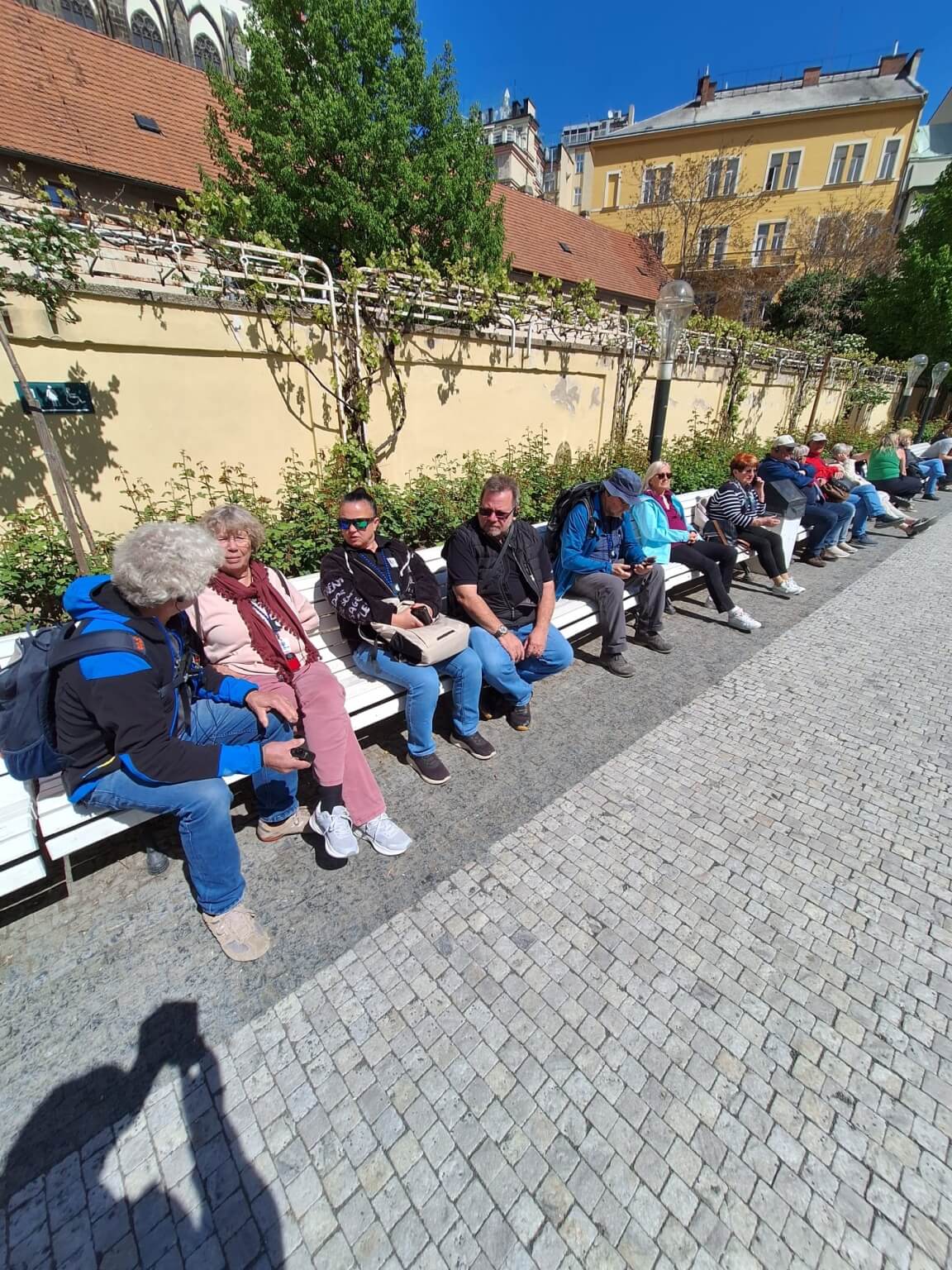 Schon auf der Fahrt in die Altstadt von Prag erhalten wir von Dagmar viele Informationen über die Abläufe der nächsten Tage, die Stadt Prag und Tschechien. Nahe dem ehemaligen Intercontinental-Hotel verlassen wir den Bus und werden durch das jüdische Viertel geführt, sehen den alten jüdischen Friedhof und hören über die Geschichte der Juden in Prag. Dann folgt ein Gang über die Karlsbrücke. Wer will, besucht Nepomuk, geht zum Rathaus, sieht den Wenzelsplatz. Dann geht es nochmals zum Rathaus und wir erleben, wie in der dortigen astronomischen Uhr die 12 Apostel zur vollen Stunde in 2 Fenstern erscheinen. Die restliche Zeit bis zur Rückfahrt zum Campingplatz verbringen viele damit, die gute böhmische Küche auszuprobieren.