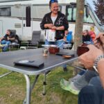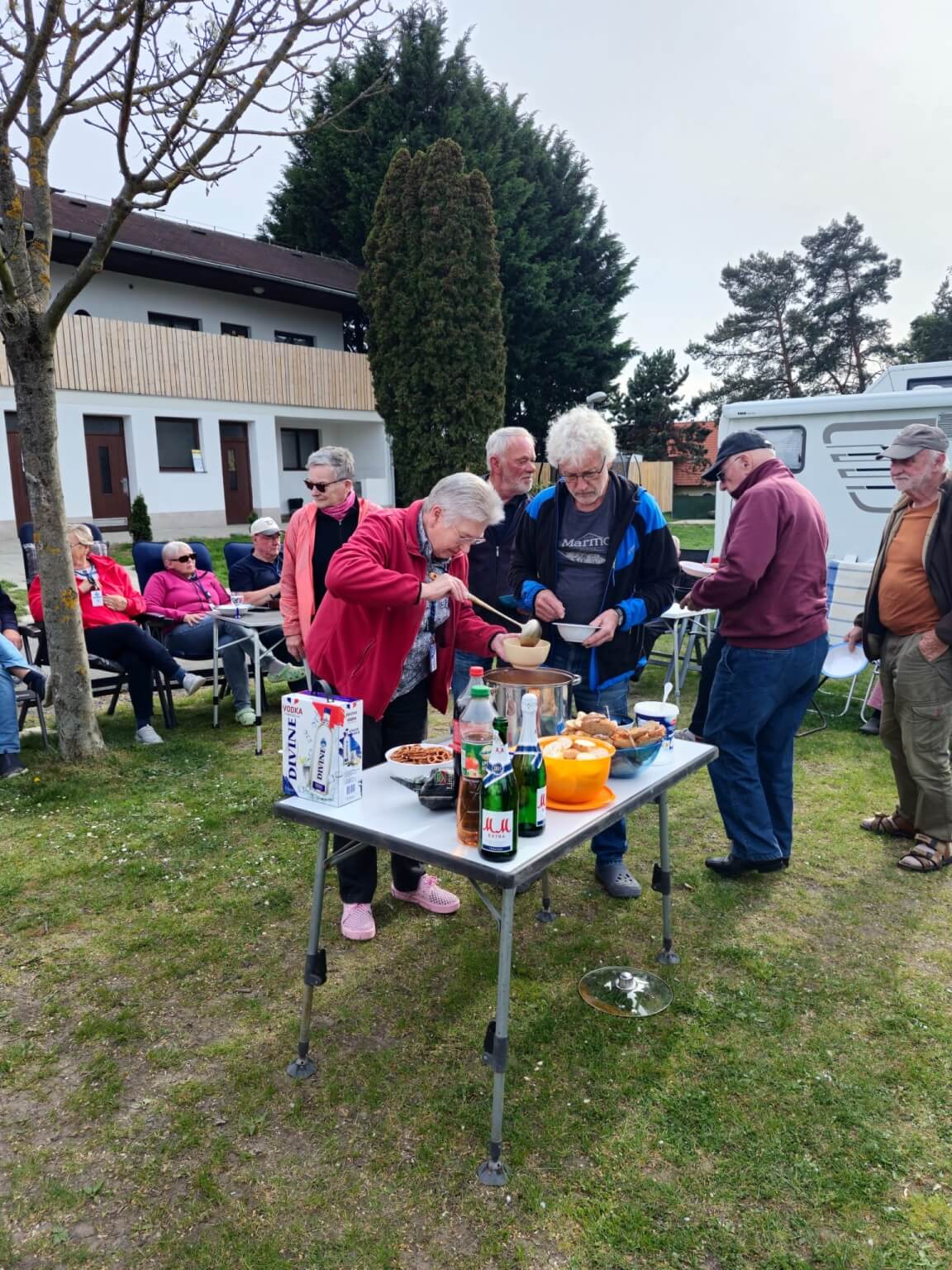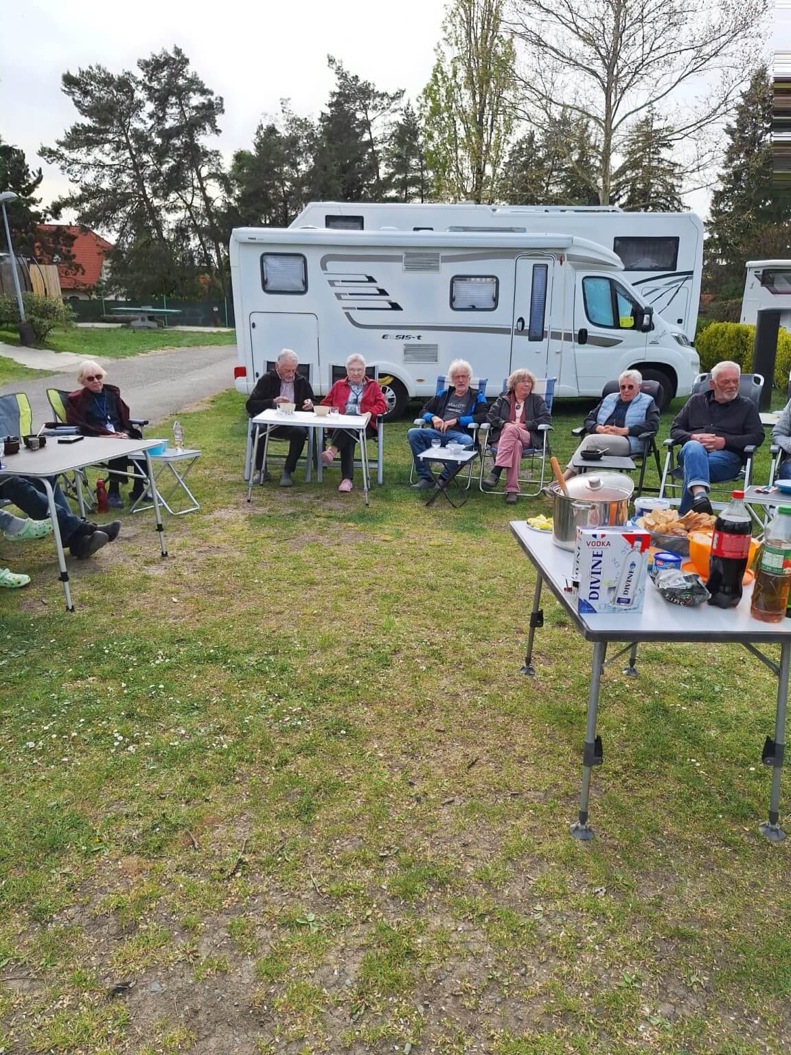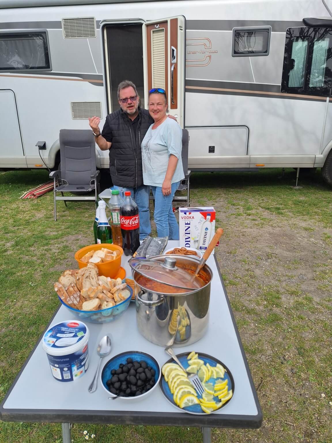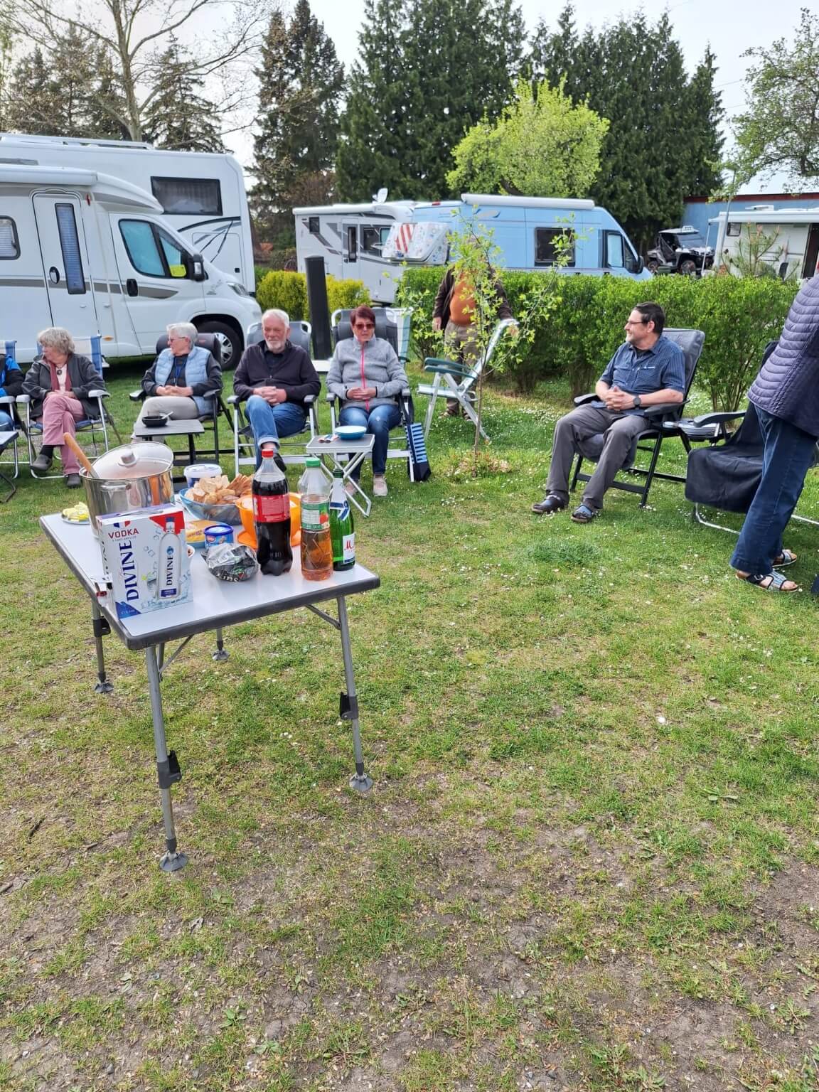 Zurück auf dem Campingplatz treffen wir uns um 17.00 Uhr noch zu einer abendlichen Runde. Tatiana hat zu einer russischen Suppe eingeladen, wie es sich gehört mit etwas Wodka, Mitfahrer steuern noch etwas zu knabbern bei, und wir sitzen, essen und reden, bis uns die Kälte in die Wohnmobile treibt. Auf einen interessanten Tag folgte ein schöner Abend.