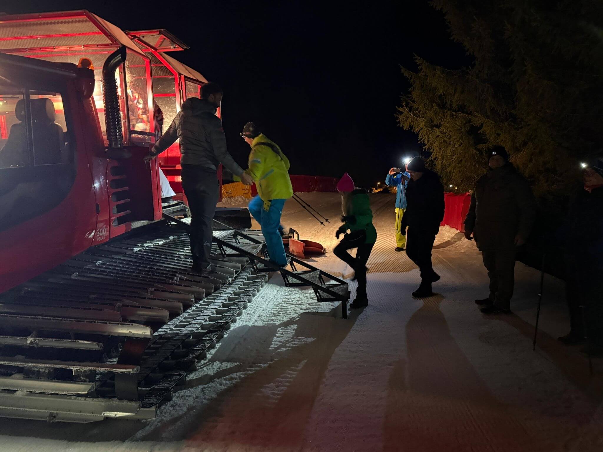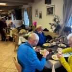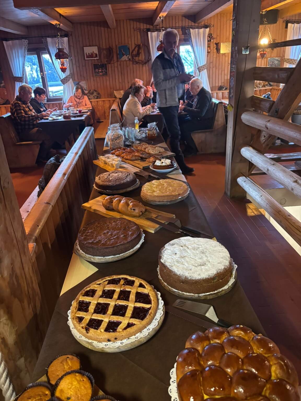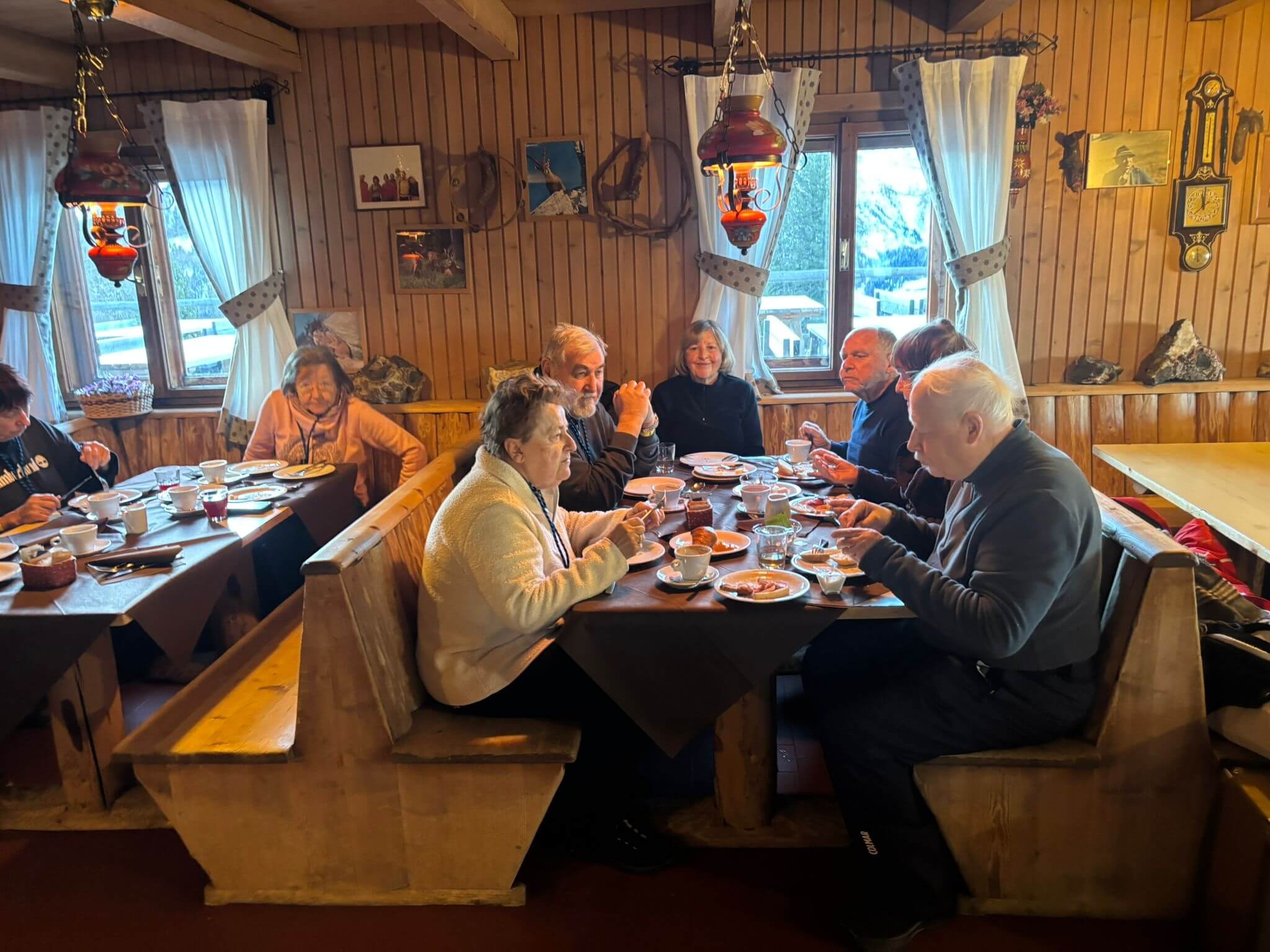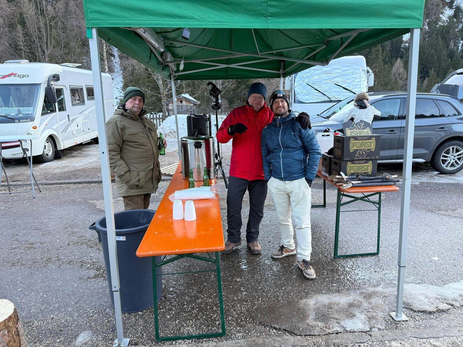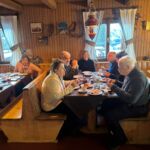 Schon um 5:30 Uhr morgens holte uns die Schneekatze vor der Einfahrt zum Campingplatz ab. Ca. 30 Minuten ging es aufwärts Richtung Bergstation der Seilbahn. Dort erwartete uns schon der Hüttenwirt mit einem reichhaltigen Frühstück und mit einem schönen, selbst gebackenen Kuchenbuffet. Doch vorher spazierten wir auf der menschenleeren Post umher. Dabei durften wir einen fulminanten Sonnenaufgang der Dolomiten erleben. Langsam erleuchtete die Sonne Stück für Stück den Rosengarten. Was war das für ein Erlebnis? Das frühe Aufstehen hat sich für alle gelohnt. In der Hütte stärkten wir uns beim Frühstück und unser Mathias hat auch sein Akkordeon mitgebracht. Damit brachte er uns auch gleich wieder in Stimmung. Im Laufe des Vormittags konnte jeder, wie er wollte, mit der Seilbahn nach unten zu unserem Camp fahren. Viele holten dann noch den versäumten Schlaf in den Wohnmobilen nach. So waren wir wieder gestärkt für die Après-Ski-Party. Es wurde getanzt und gelacht. Und Mathias hat einen „verrückten“ Harmonikaspieler engagiert. Es war wieder ein wunderschöner Tag, den wir erleben durften.
